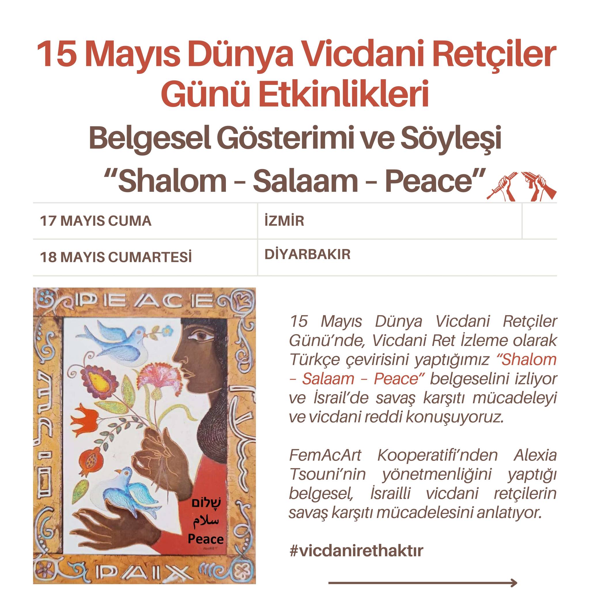 Screenings of the Documentary “Shalom – Salaam – Peace” with Q&A in Izmir on Friday 17/5/2024 & in Diyarbakir on Saturday 18/5/2024. Many thank to Vicdani Ret İzleme for this honor!
