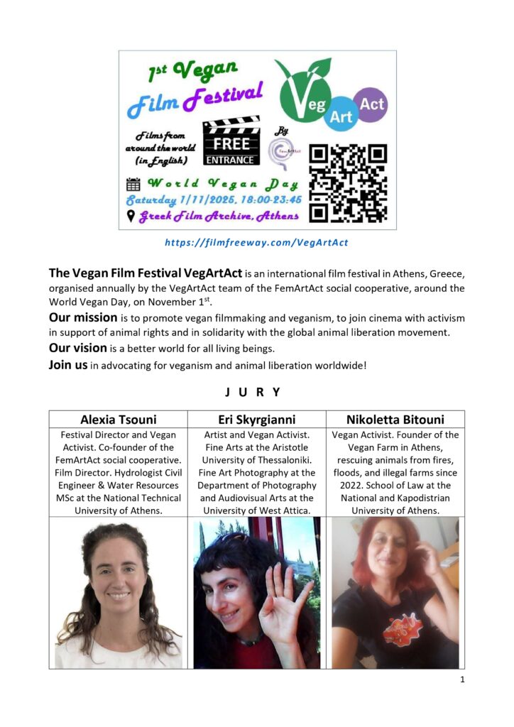Many thanks to the Jury of the 1st Vegan Film Festival VegArtAct 2025: Alexia Tsouni, Eri Georgia Skyrgianni and Nikoletta Bitouni.