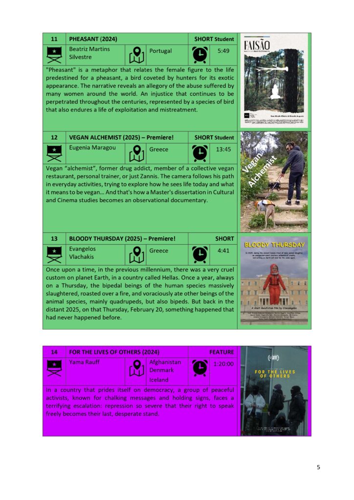 And the HONORABLE MENTIONS of the 1st Vegan Film Festival VegArtAct 2025 go to: