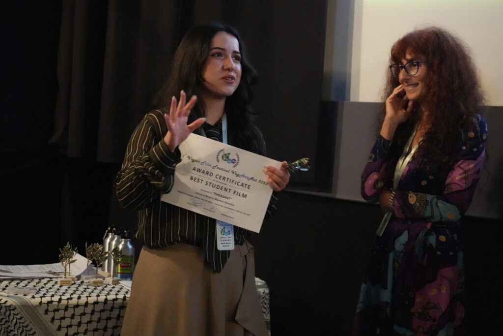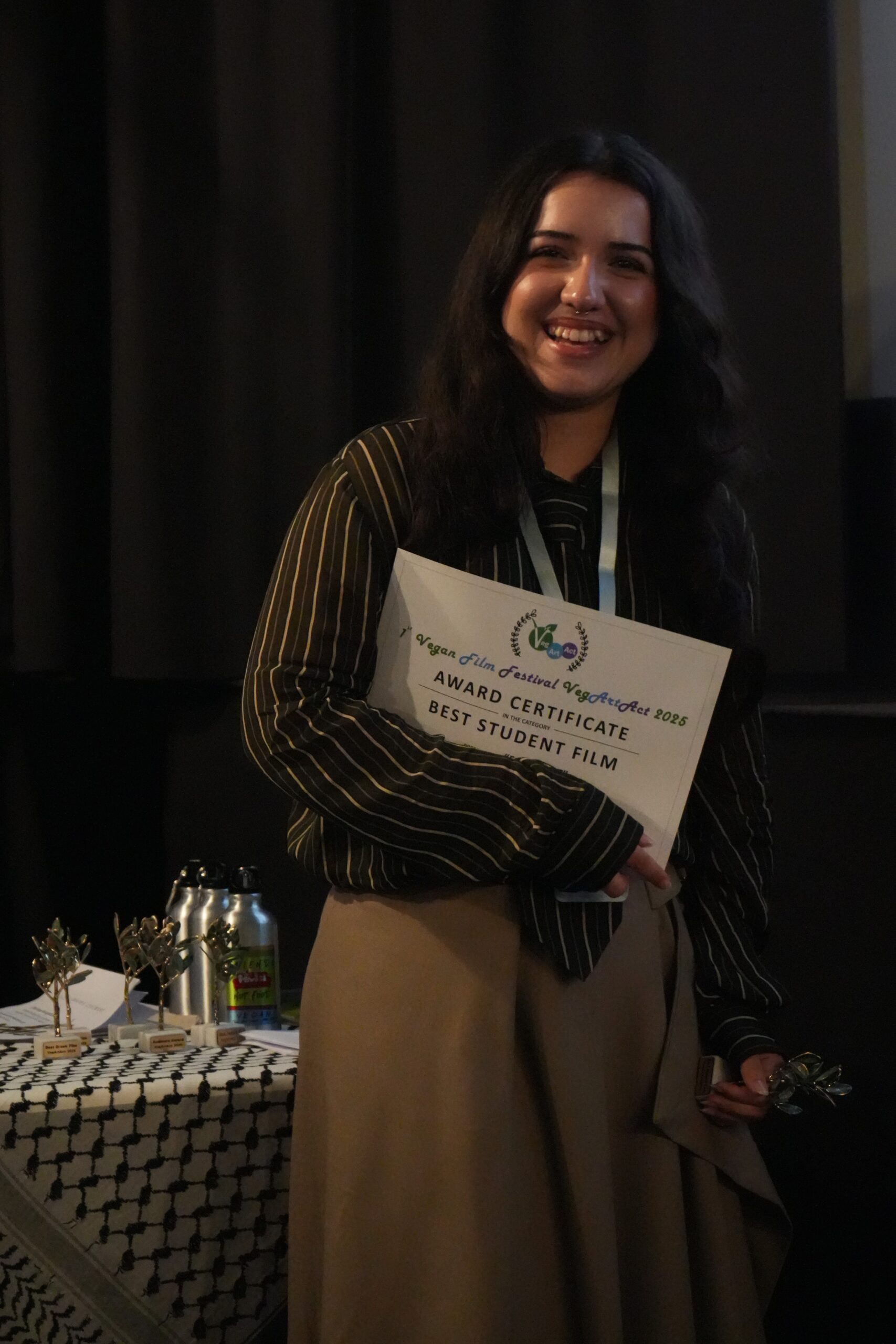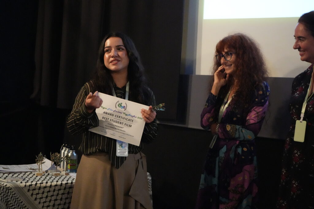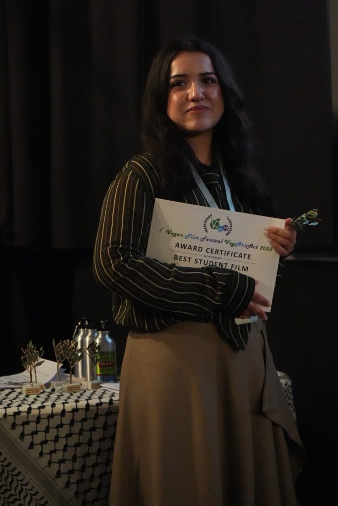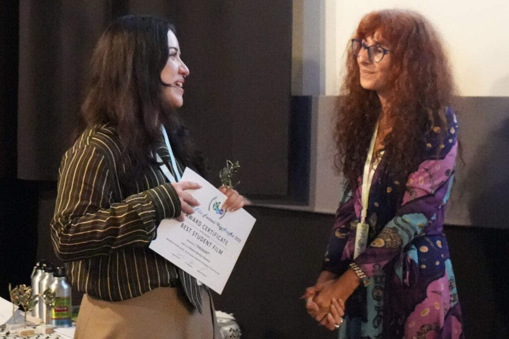 And the BEST STUDENT FILM AWARD of the 1st Vegan Film Festival VegArtAct 2025 goes to “PHEASANT”, directed by Beatriz Martins Silvestre (Portugal), awarded by Eri Georgia Skyrgianni, Jury member, Artist & Vegan Activist!